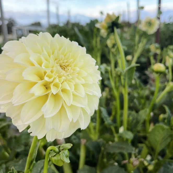 Winter sunshine is a gorgeous bright lemon medium decorative cultivar. With long strong stems and the perfect round blooms, Winter Sunshine is the perfect dahlia to have in your garden. She has very long stems and flowers all season long.