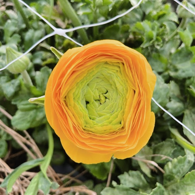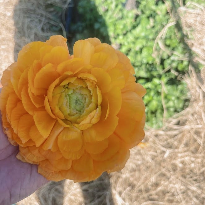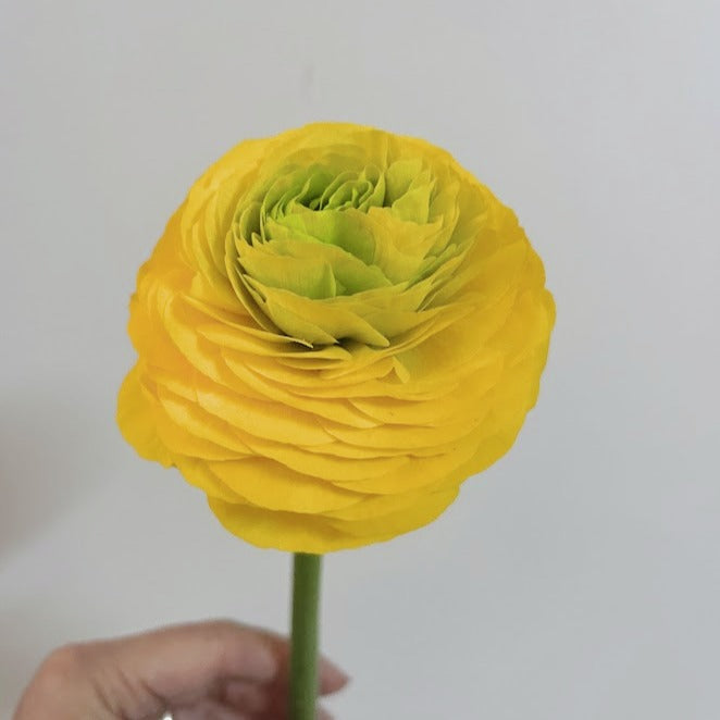 Ranunculus Giallo is a large yellow bloom that brings sunshine to a garden scape.